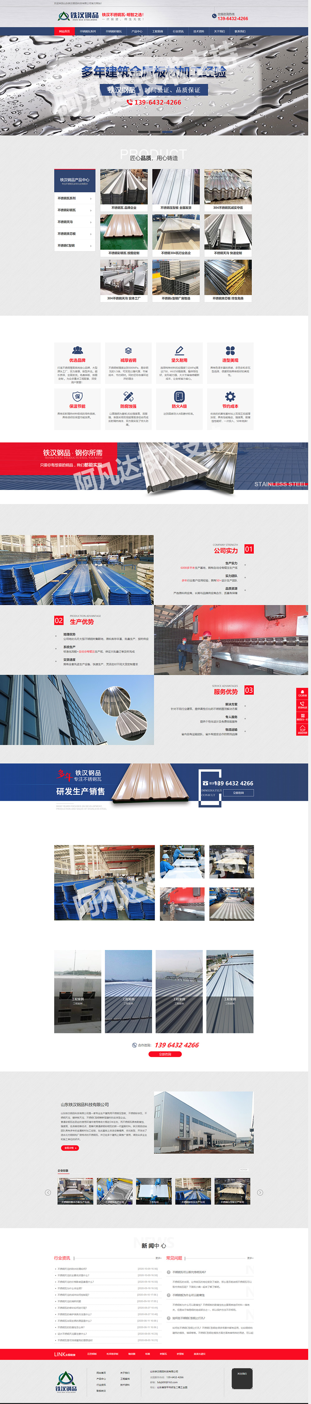 【公司簡介】:山東鐵漢鋼品科技有限公司是一家專業生產建筑用不銹鋼壓型板、不銹鋼彩涂瓦、不銹鋼天溝、鍍鋅板天溝、不銹鋼C型鋼等新型建材的實體型企業。