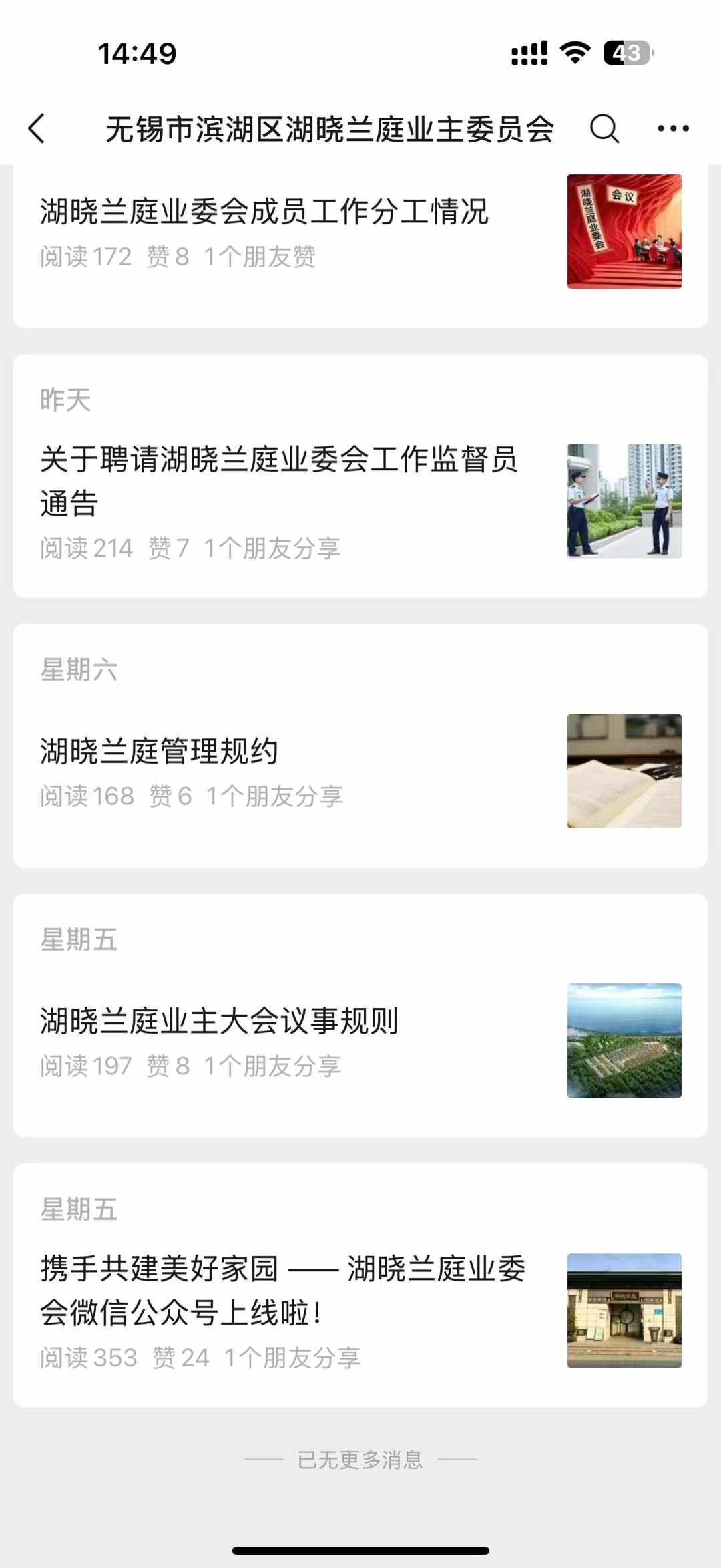 祝賀無錫市濱湖區湖曉蘭庭業主委員會公眾號正式上線運營。