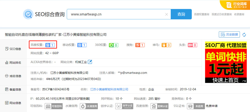 江蘇小黃蜂智能纏繞包裝設(shè)備營銷型網(wǎng)站SEO優(yōu)化案例展示