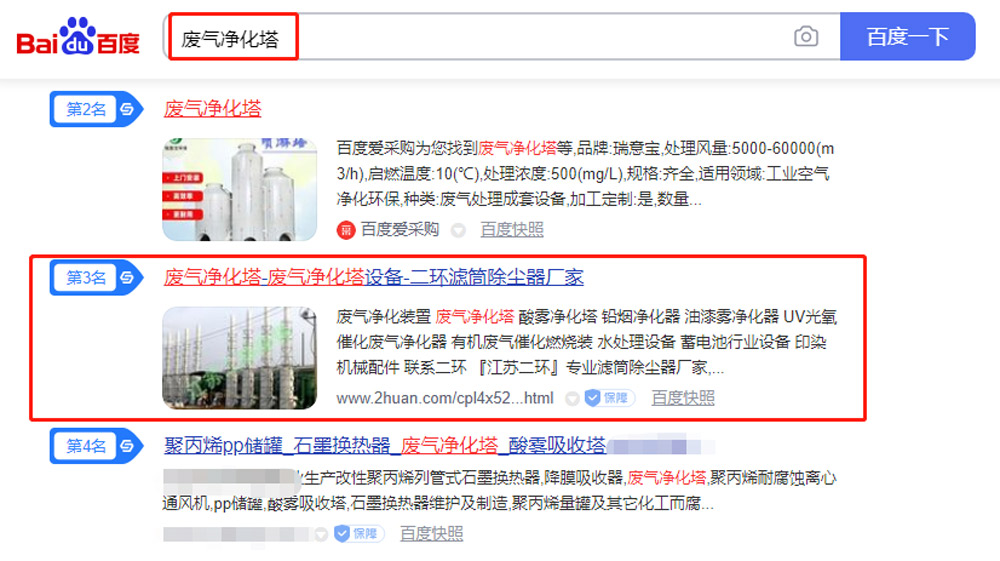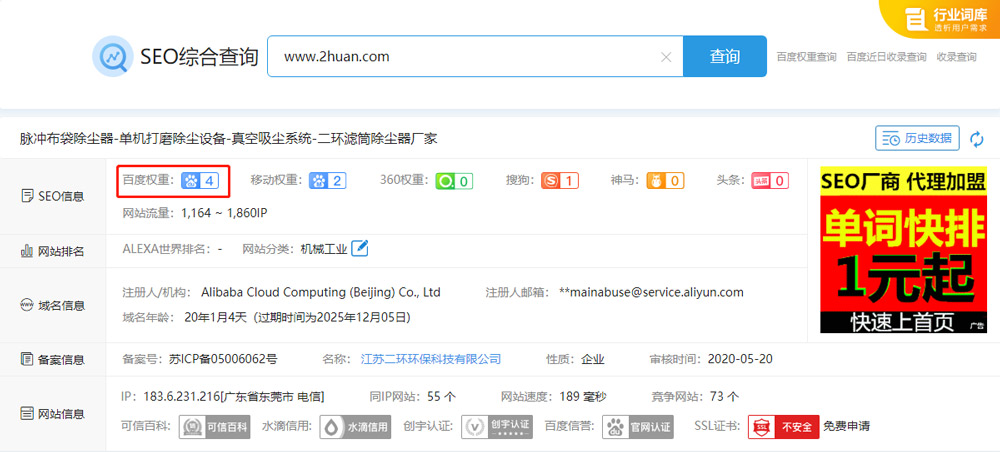江蘇二環環保科技有限公司營銷型網站SEO優化案例展示