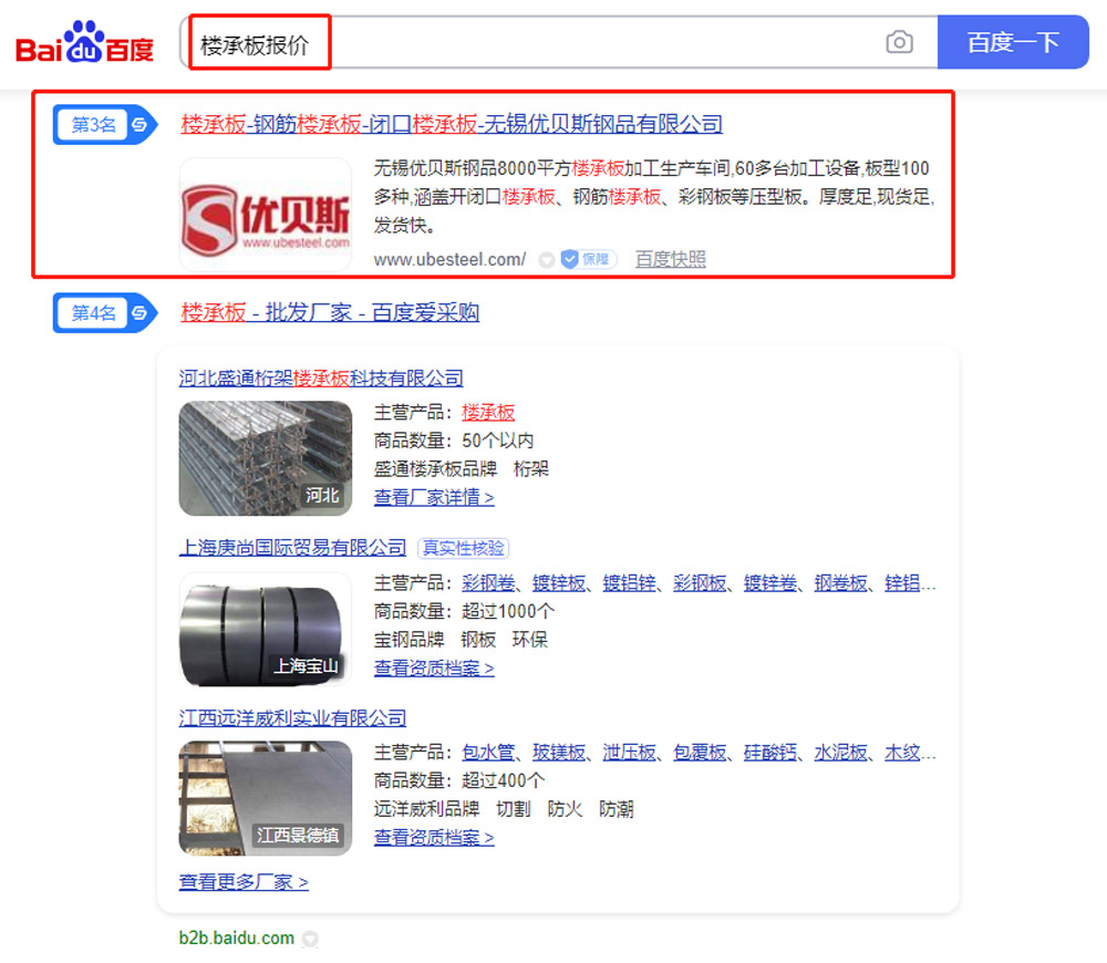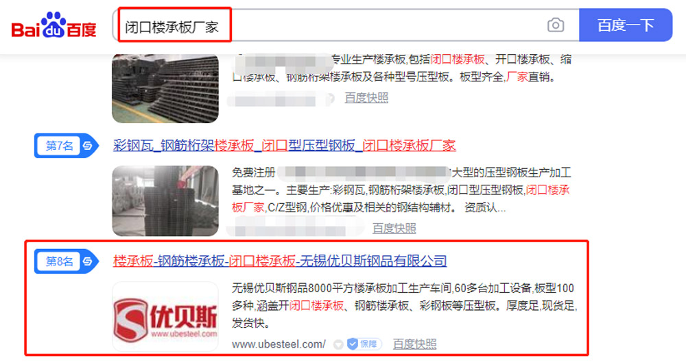 無錫優貝斯樓承板SEO優化案例