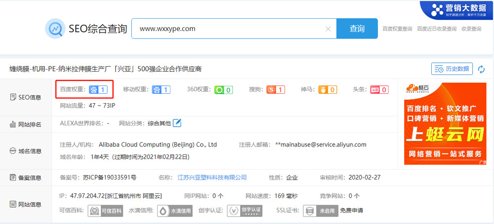 1、百度權(quán)重:1,移動權(quán)重:1