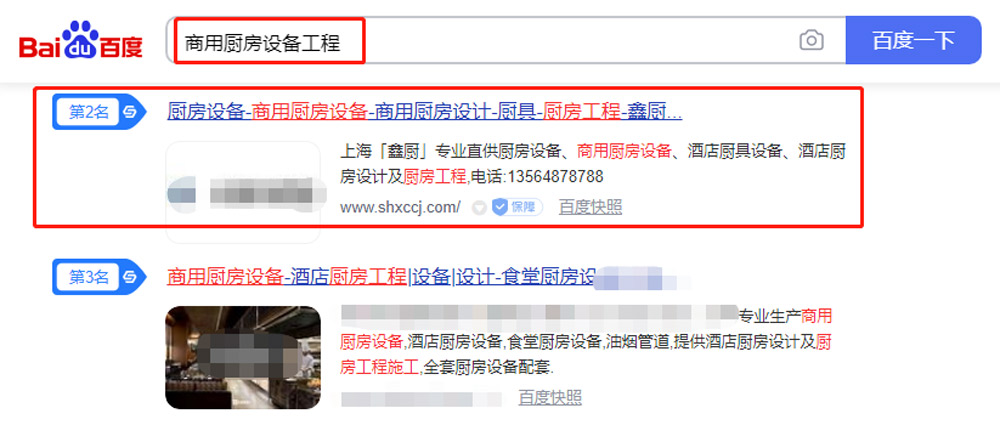 上海鑫廚節(jié)能廚房設(shè)備SEO優(yōu)化案例